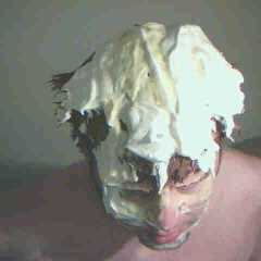 Andrew19 was surprised by KenLondon with a big sloppy cream pie to the face